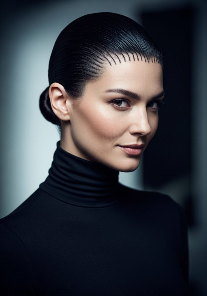The key with short hair buns is that the sleekness of the gel finish is what makes the style look intentional. A small bun with perfectly smooth edges reads far more polished than a bigger bun with flyaways. Add a thin headband at the hairline for extra control and a finishing touch.